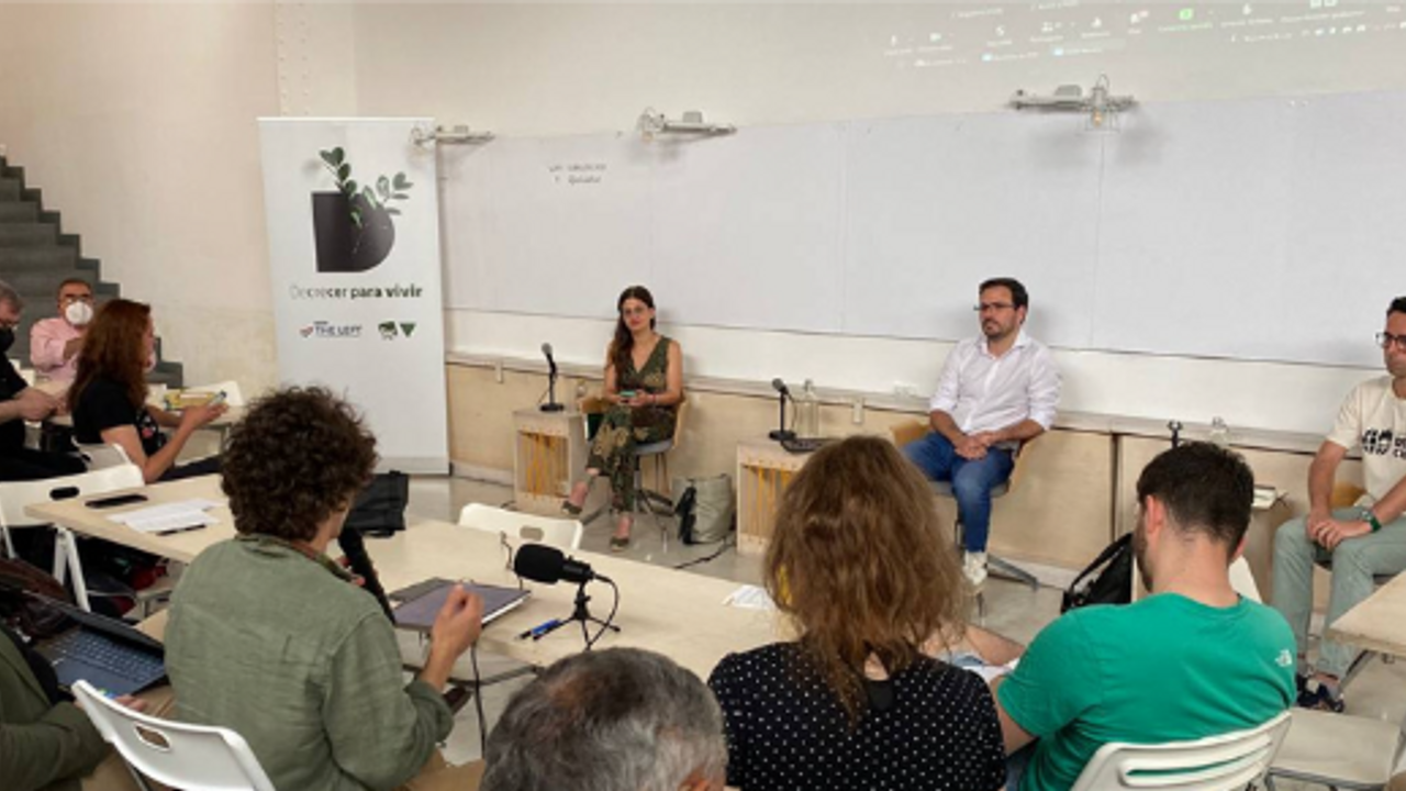 The "Decrecer para vivir" group was created on May 14, 2022, in Madrid. It was initiated by the political party Izquierda Unida and is open to other parties and civil society.
